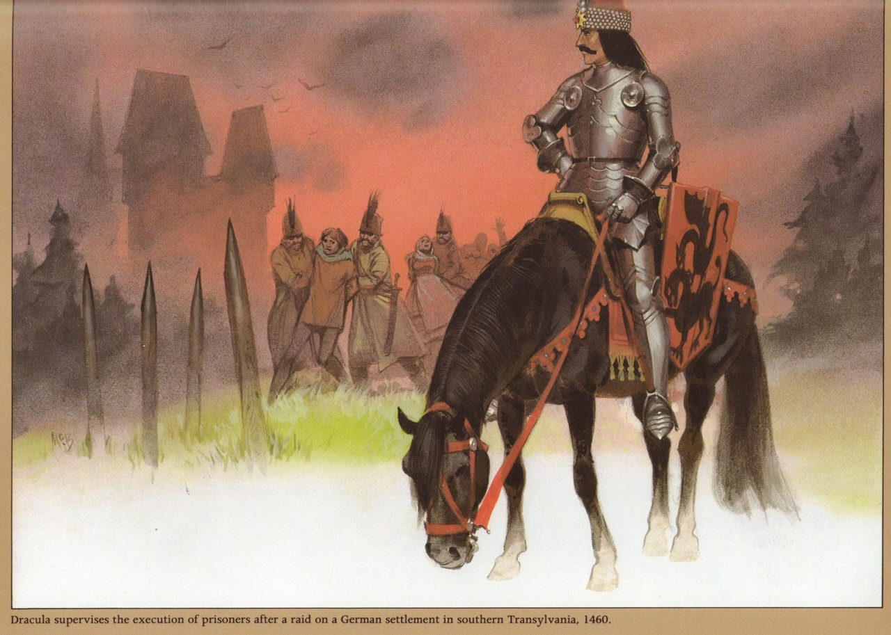 Само имя героя этих очерков звучит более чем зловеще. Дракулой зовут предводителя вампиров из фильмов ужасов, и имя это заимствовано именно у Цепеша, являющегося прототипом экранного монстра. Еще «Дракула» значит по-румынски «черт», а «Цепеш» значит «кольщик», «любитель сажать на кол», каковым занятием Влад и прославился в народе на все времена.