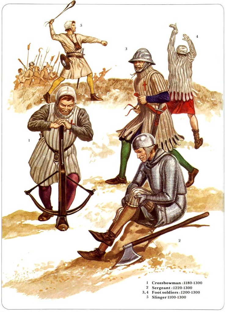 Для изучения тактики галицкого войска в XIII в. большое значение имеет вопрос о соотношении конницы и пехоты. Конная княжеская дружина продолжала еще сохранять свое значение. Ее использовали для нанесения удара, преследования, организации небольших рейдов в соседние земли. Упорную борьбу с Венгрией нельзя было вести без конницы, так как венгры сами были хорошими наездниками. С другой стороны, войны с ятвягами в густых лесах и болотах требовали применения пехоты. На узких тропах и дефиле даже кавалерия билась в пешем строю. Применение пехоты не ограничивалось только областью ятвяжского Полесья. Все широкие операции, связанные с освоением значительных пространств, требовали теперь пеших войск. Экспедиция против продавшихся монголо-татарам князей Болоховской земли в 1241 г. была осуществлена 3 тысячами пешцев, поддержанных только 3 сотнями конной дружины. Поражение Даниила в 1245 г. летописец объясняет многочисленностью пехоты противника: «одоле Ростислав, многи бо име пешьце». Для реванша Даниил должен был выступить, «собрав вои многи и пешьце». Пехота часто упоминается на первом месте: «Посласта (Даниил. - Б. Р.) многы своя пешьце и коньникы...» (Галицкая летопись, 1253 г.)