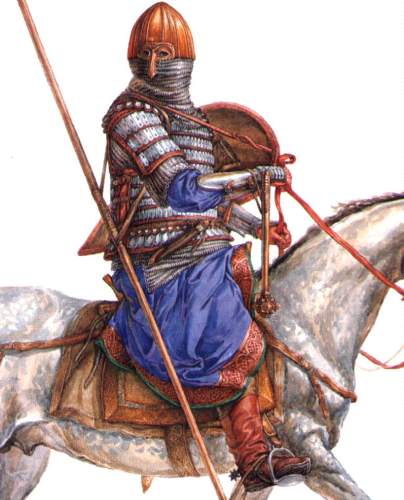 Азиатская посадка позволяла всаднику эффективно использовать меч и лук, но не давала достаточной устойчивости для боя на копьях. Так что главным оружием дружинников были не копья, а мечи и булавы. Кроме того, в отличие от европейского рыцаря, витязь возил с собой и метательное оружие: лук и пару дротиков.