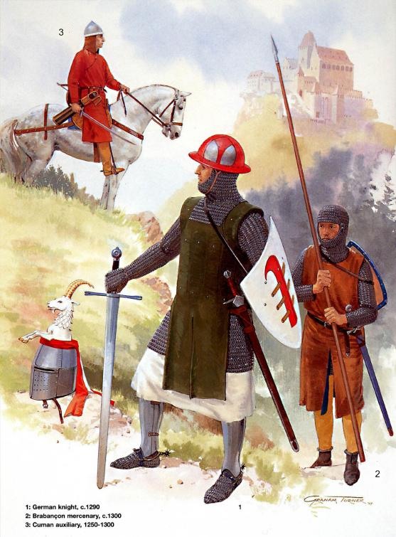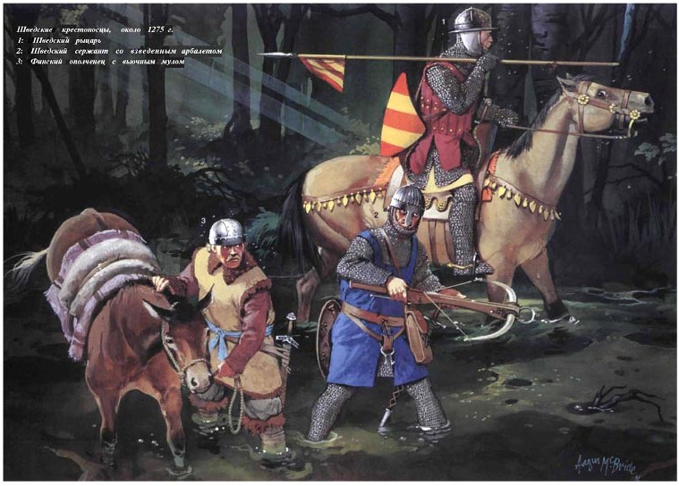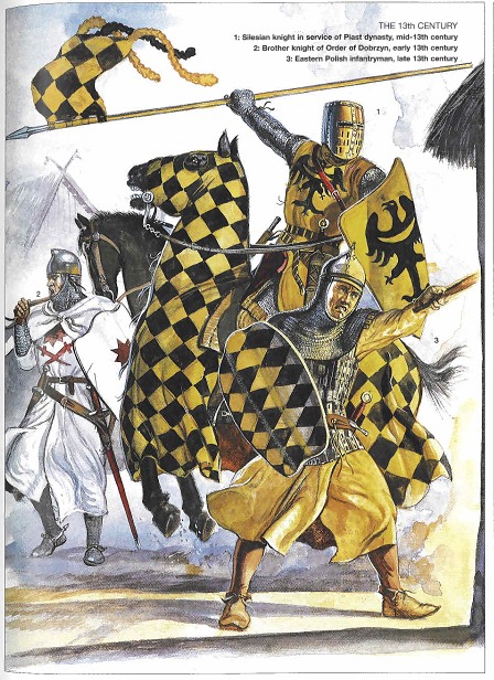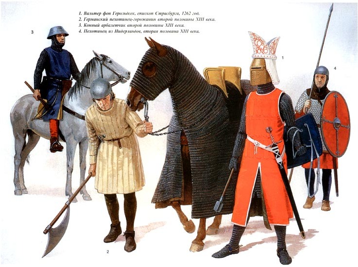 | Немецкий рыцарь примерил шапель своего пикинера, и про себя подумал "удобно". Наемник-кавалерит тем временем наблюдает за месностью. | Польские рыцари и пехотинец 13 век. | Эпизод невской битвы |