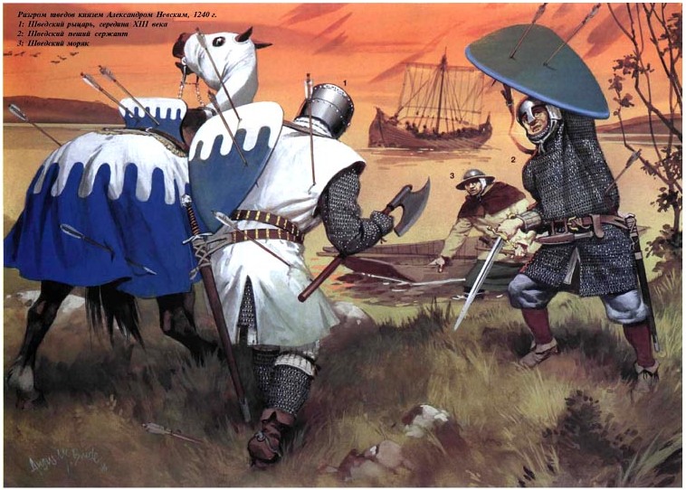 Разорение Руси монголо-татарами казалось немцам и шведам самым подходящим моментом для нападения на заманчивые русские области. Первый удар был предоставлен шведам, чтобы отнять у Новгородской республики ее «окно в Европу» – р. Неву. По словам летописи, шведский король «исполнися зависти и ненависти и возгордеся в мысли своей, яко во время си улучи, ведяще бо иже тогда отъинуду Батыево пленение в Руси. Краль же от своея страны надеяшеся оставшую Русь поглотити, и в гордости своей глаголаше сице: «пойду и попленю Великий Новеград, и прочая грады, и вся люди Словенскиа в работу себе сотворю и самого великаго князя Александра побежду или жива рукама ухващу». И собра люди многи: местери и бискупы своя и Свея и Мурмане и Сумь и Емь и наполни корабля многи полков своих и поиде в силе тяжце. Дышя духом ратным преплы море и преиде реку Неву, шатаяся безумием своим, хотя восприати Ладогу и Великий Новеград и всю область Новоградскую до Валама» (Никоновская летопись, 1241 г.).