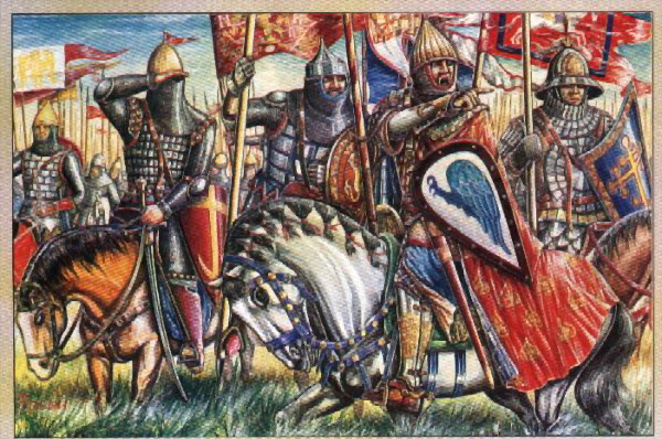 | Московский Кремль при Дмитрии Донском. Худ. А. Васнецов | Польские рыцари 14 в | Польские рыцари и арбалетчик 14 в |