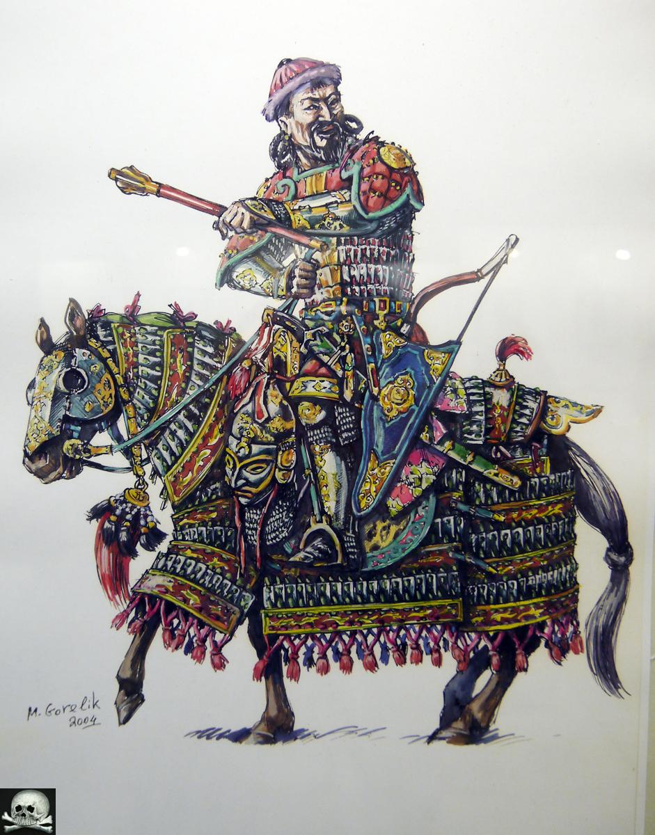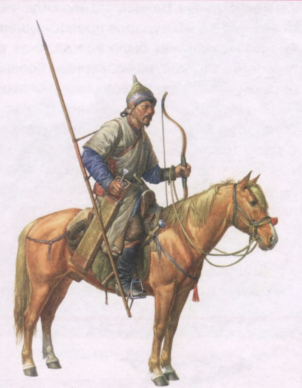 «…и они (татары) стали сильно стрелять, и летели стрелы их в город, словно дождь из бесчисленных туч, не давая выглянуть. И многие из стоявших на стене и на заборолах, уязвленные стрелами, падали, ибо больший урон приносили татарские стрелы, чем стрелы горожан, ведь были у татар стрелки очень искусные. Одни из них стоя стреляли, а другие были обучены стрелять на бегу, иные с коня на полном скаку, и вправо, и влево, а также вперед и назад быстро без промаха стреляли»