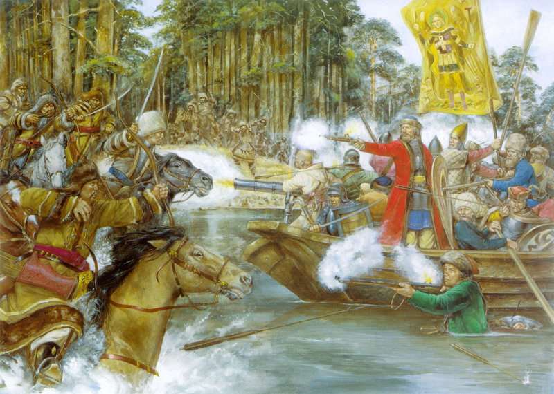 Летом 1583 года казацкие войска на судах двинулись по Иртышу, подчиняя местных князьков...
