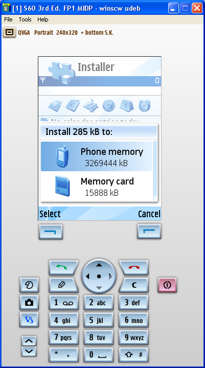 Для установки распакуйте архив и запустите setup.exe. Во время установки программа попросит указать папку куда устанавливать, но не нужно менять папку установки (могли бы и не предлагать). После установки  запустить игру можно через Пуск → Все программы →S60 Developer Tools →3rd Edition FP1 SDK →MIDP → Emulator. Покажется телефон. Но не спешите выбирать File→Open.  программе может потребоваться некоторое время для инициализации. Только когда появится экранная заставка - тогда вот можно File→Open и ищите нужный *.jar файл. Дальше запускается процесс установки игры или приложения. После этого вы должны вызвать главное меню, а там  выбрать пункт Installed. Ну а потом выбрать нужную игру, там Select→Open и наслаждайтесь игрой.  Программа предлагает зарегистрироваться, но не настаивает на регистрации прекрасно работает и так, к тому же если вы не программист и не знаете хорошо английского языка то регистрация вам бес толку.