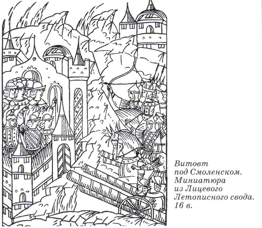 | Наверняка, Монголо-татары на Ледовом побоище | Витовт под Смоленском, события конца 14 в, нарисовано в 16 в. |