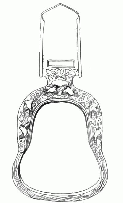 Кыргызские золотых дел мастера создали свой особый стиль. Их изделия, форма которых, в целом, соответствовала степной моде, отличались богатым и затейливым растительным орнаментом. Железное стремя, представленное на рисунке, инкрустировано золотыми фигурками птиц, порхающих среди извилистых ветвей. Эпоха раннего средневековья. Уйбатский чаа-тас. Хакасия. ГИМ, Москва