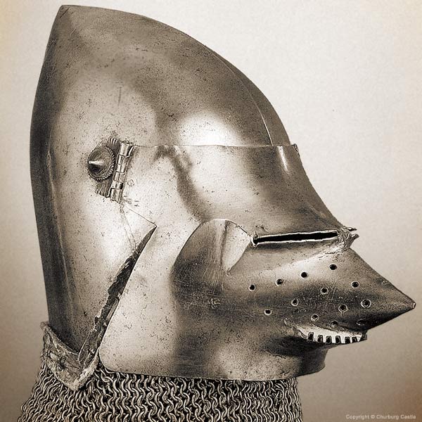 | Клаппвизор бацинет, в замке Valeria, Sitten Швейцария. Очень популярен у современных реконструкторов |