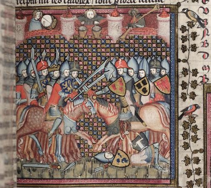 | Забрало Пигфейс на Гранбацинете. Миниатюра германской рукописи конца XIV - начала XV вв. Библиотека Института Искусств, Чикаго |