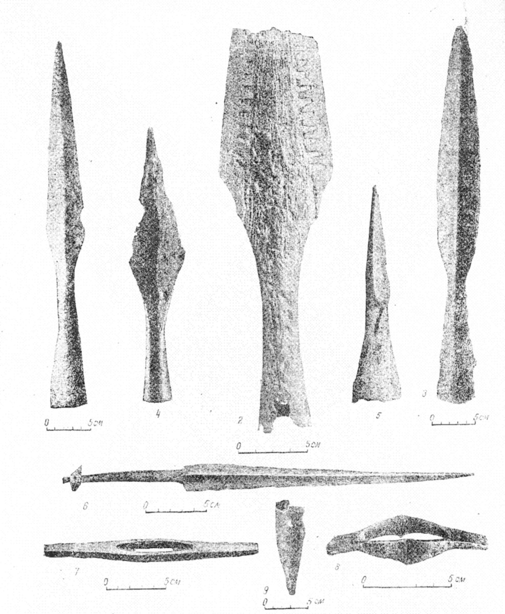 Метательные копья следовало бы поместить в соответствующей главе, но в виду их малочисленности и органической связи с. копьями мы рассматриваем метательные копья здесь.