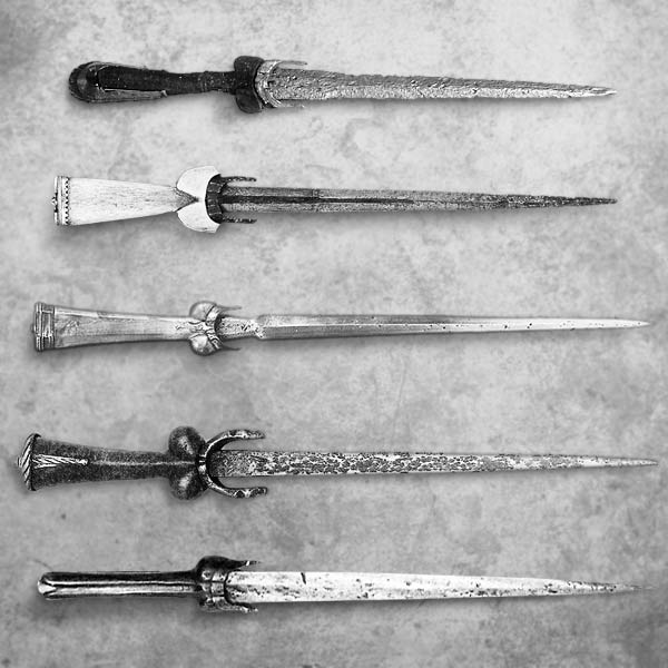 | Каждый из этих кинжалов ballok имеет свой стиль клинка | Выборка кинжалов с рукоятками в основном из дерева | Эти ballock кинжалы имеют металлические віступы на ограничителях |