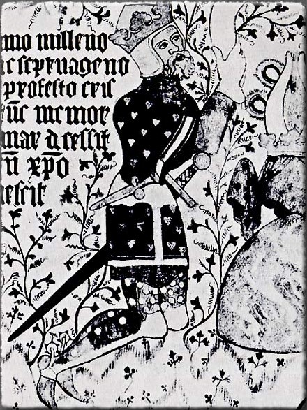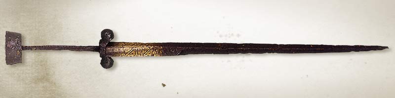 | Местонахождение неизвестно. Английского или шотландского происхождения. Один из немногих образцов 14 века. Уникален еще тем что имеет дополнительные заклепки на гарде. |