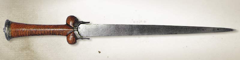 | Из Philadelphia Museum of Art.Раскопки, датирован 15 в. На этом примере наблюдается типичный одно лезвийный клинок и рукоять с дополнительными выступами. |