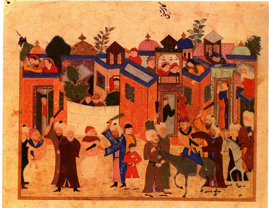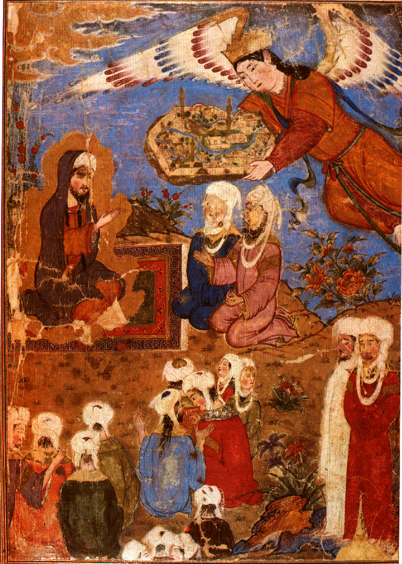 Презентация города. Мирадж-наме (Вознесения Мухаммеда). Из Sarai Albums. Тебриз, начало 14 века. Hazine 2154, фолио 107а |