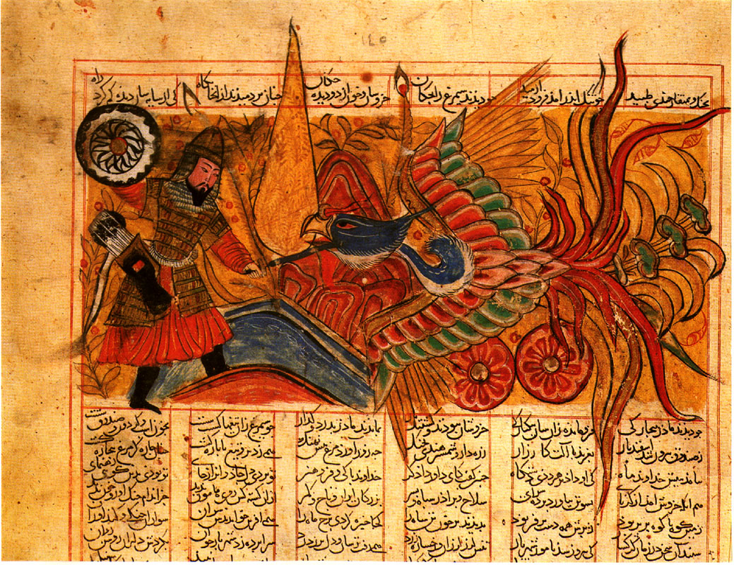 Поединок между Исфандияр и Симургом Шах-наме ("Книга царей" Фирдоуси's). Шираз, 1330. Hazine 1479, фолио 145А |