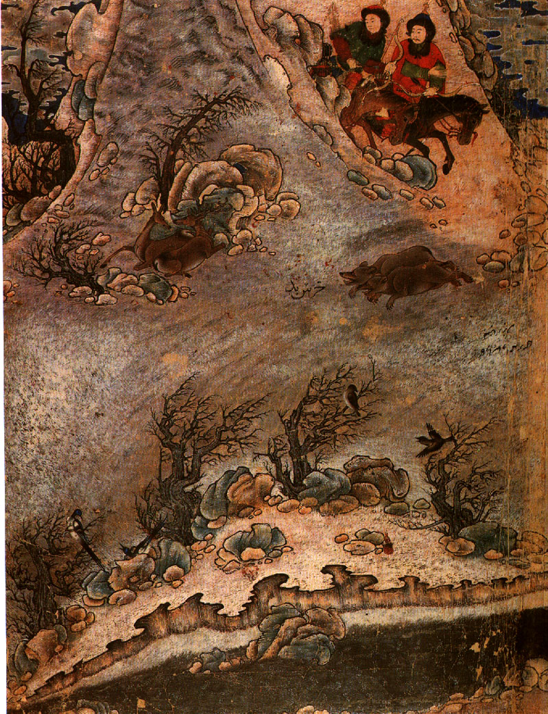 Зимний пейзаж. Из the Sarai Albums. Тебриз, середина 14 века. Hazine 2153, лист 28а |