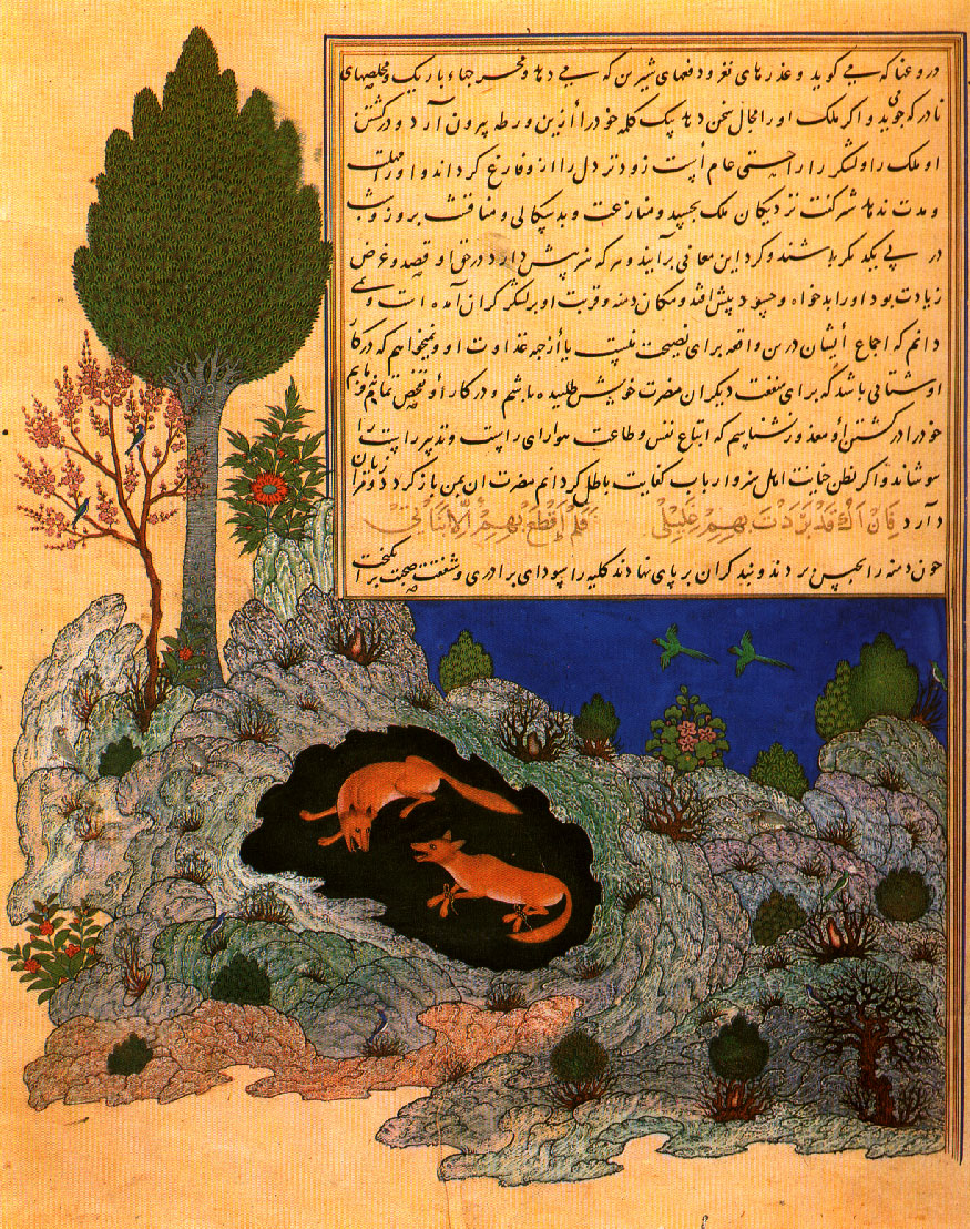 Лисы в норе Калила ва Димна. Герат, 1430. Revan 1022, фолио 56а |