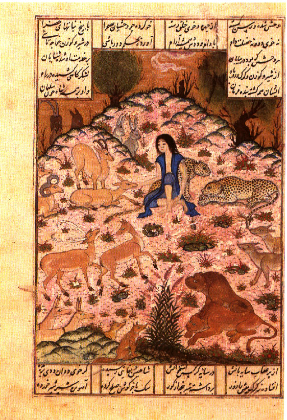 Меджнун в пустыне Khamsa. Хамса. Герат, 1447. Hazine 786, 126а фолио |
