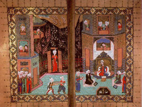 Осталось очень мало светских иллюстрированные текстов, которые сохранились от поздней античности и Византии. Повышение количества иллюстрированных светских работ по Исламу происходит в конце 12 и 13 веков. Появляются примеры работ, которые иллюстрируют появление богатейшего купечества на Ближнем Востоке со средствами и претензию к государственной власти. Между тем, персидские картины были в основном гордости царей и правителей. Существовали также религиозные картины, которые представляют персидское толкование ислама. Фирдоуси — автор текстов Шах-наме. В этой книге повествуется о деятельности древних правителей Персии. Иллюстрации к этой книге выполненны в 13-15 веках. Многие из этих иллюстраций вместе с книгами хранятся во дверце-музее Топкапу-Сарай (Topkapi Sarai).