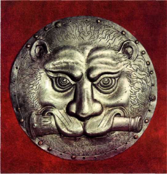 172 года (1664 г. — Р. П.) Генваря в 28 день, по именному указу Государя, отпущено из Оружейной палаты в Пушкарский приказ пушкарям тридцать четыре пары кругов жестяных, опушены бархатом зеленым, черным, алым и в кетом числе пара железных круговльвовы головы — да во рту пушки, на жестяных кругах писаны орлы одноглавые, в правой лапе пушка, в левой трость;у кругов перевези бархату алого, да у железных кругов бархату зеленаго, пряжки у всех медные.