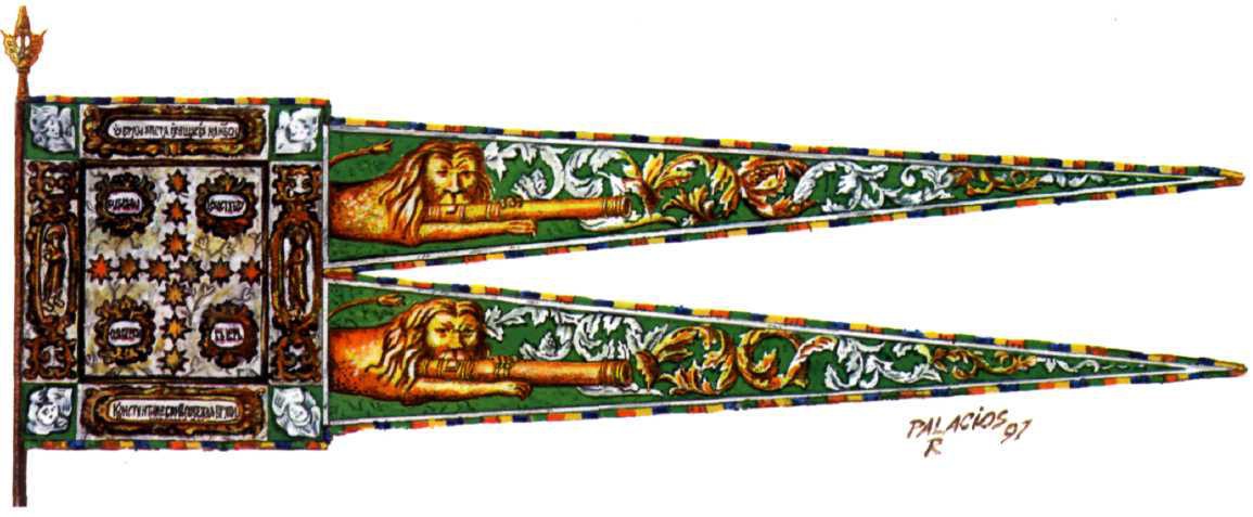 Были у Московских артиллеристов XVII в. флаги и прапоры, обязательные при исполнении ими своих служебных обязанностей. Так в январе 1684 г., на Водосвятие, «...около пищалей стояли пушкарские головы с пушкарским чином, с знамены, в цветном платье, по наряду и по росписи из Пушкарского Приказу».