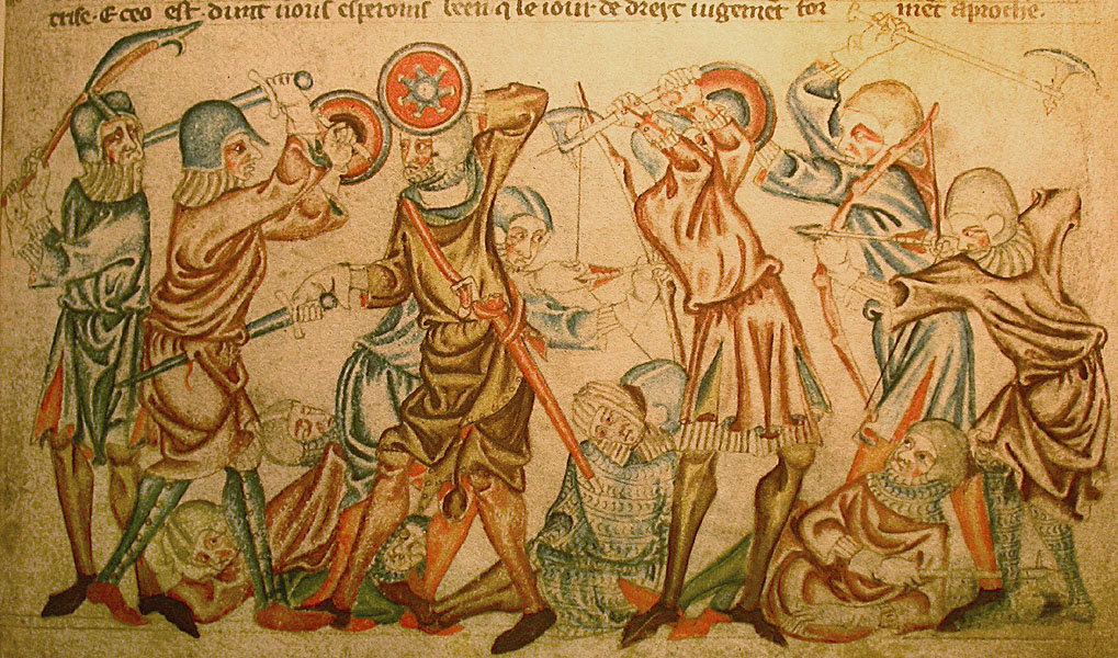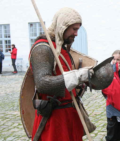 У воинов изображенных на представленной ниже иллюстрации из Библии Мациевского (1250 год) есть головной убор, который одевается: у первого на кольчужный капюшон, у второго на простой чепчик. Возможно здесь мы имеем дело с войлочной шапочкой, фото которой предоставлено.