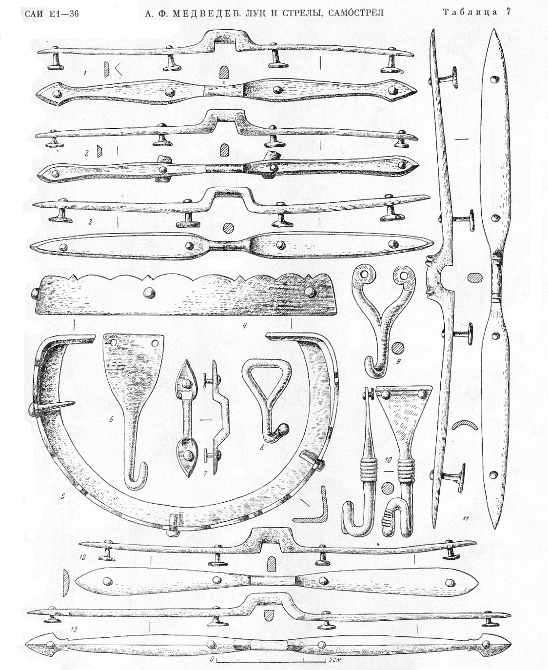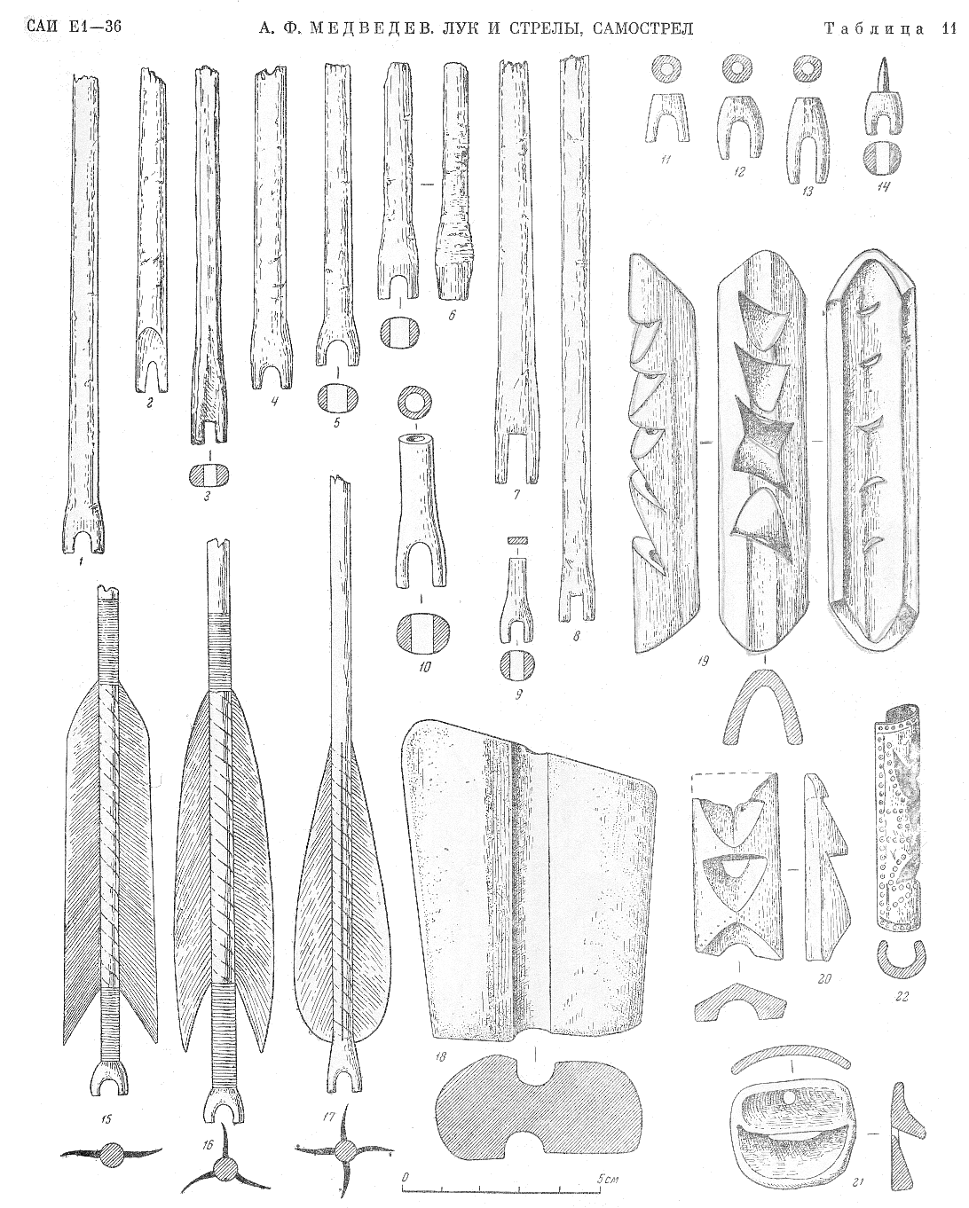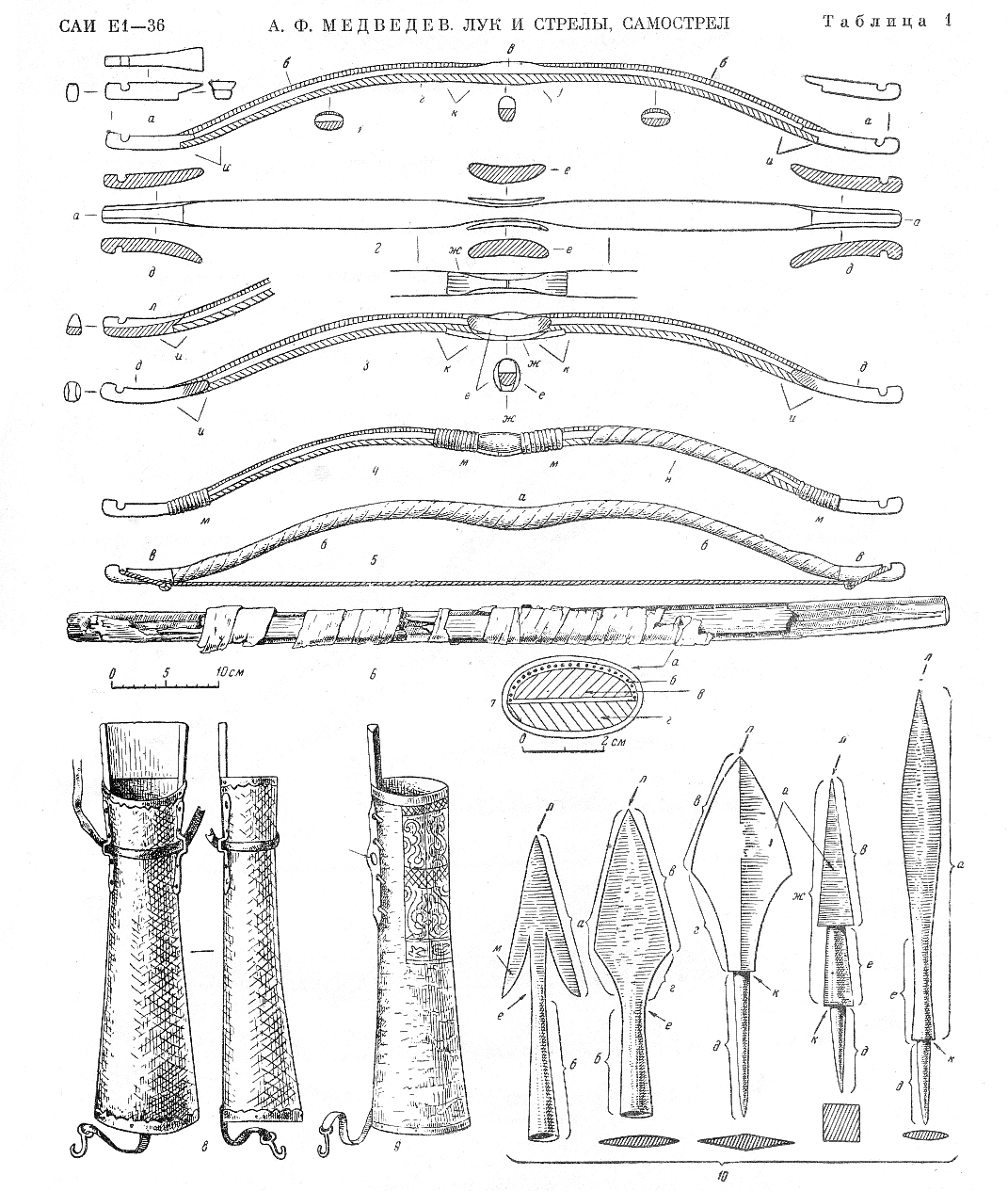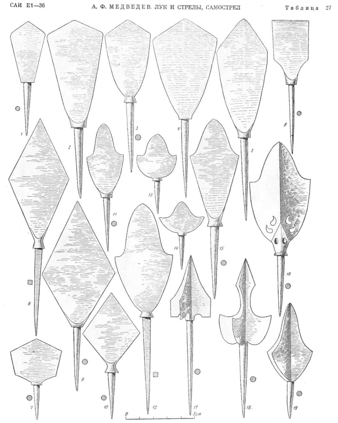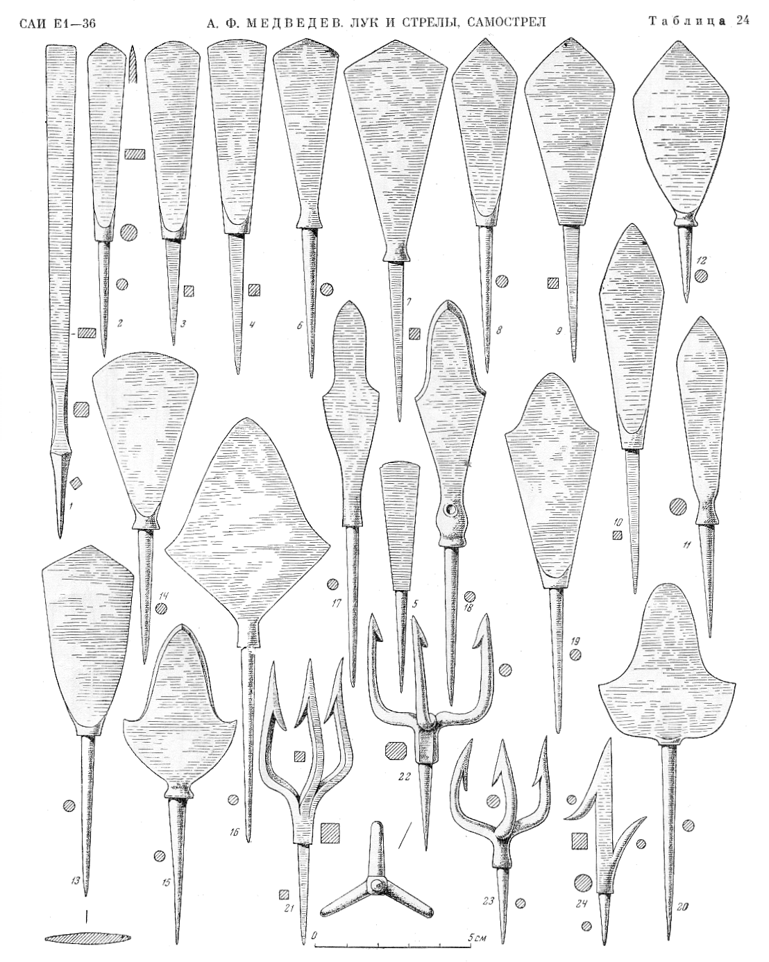 | Табл.30 Б Типы наконечников стрел Восточной Европы VIII–XIV вв. | Табл.30 В Типы наконечников стрел Восточной Европы VIII–XIV вв. |