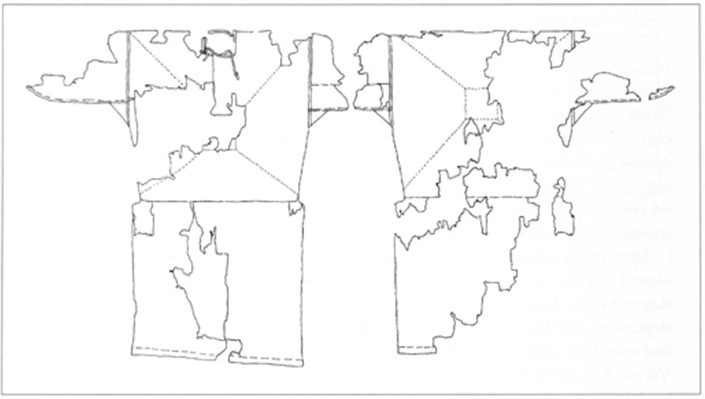 | 46 Выкройки штанов из Германии римского времени. А) сверху: F.S.3684. Торсбьёрг Б) напротив сверху: F.S.3685. Торсбьёрг В) напротив снизу: Дамендорф. Масштаб 1:15. |