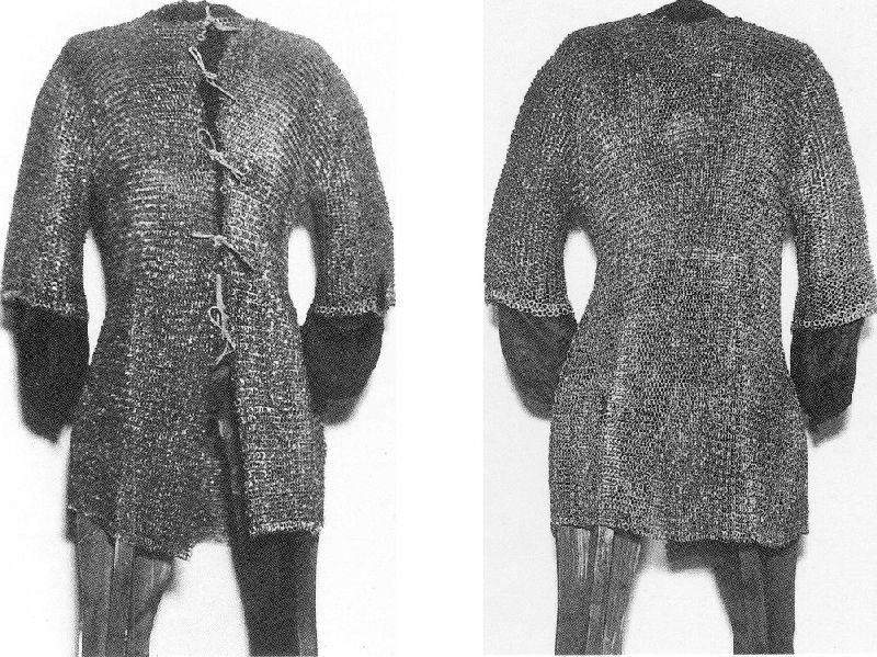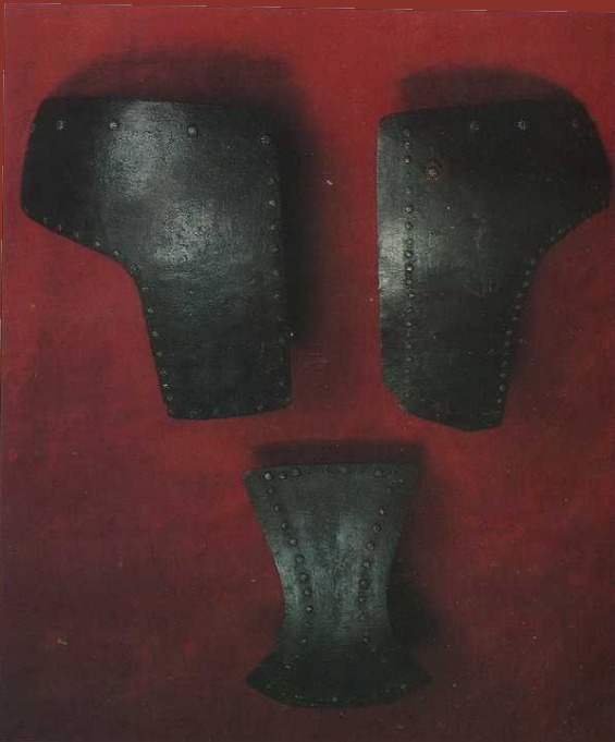 Клепанная кольчуга из Нюрнберга (Haubert de mailles treslies) около 1350. инв. G.Po.2749. Пластины, как будто итальянского производства. 1390-1400 инв. M.Po.143. Набедренник и наколеник 1390-1400 (cuissard et genoulierre) инв. G. Po.2614