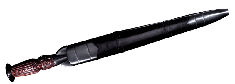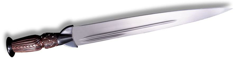 Спецификация: Вес кинжала: 537 грамм (18.9 унций) Толщина клинка: 6 мм (1/4 дюйма) Ширина клинка: 3,8 см (1 1/2 дюйма) Длина клинка: 33 см (13 дюймов) Полная длина: 46.7 см (18 3/8 дюймов) Ножны из полированной стали с кожаной обкладкой