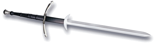 | Спецификация: Вес меча: 3104 грамм (109.5 унций) Толщина клинка: 5,5 мм (7/32 дюйма) Длина клинка: 101.3 см (39 7/8 дюймов) Полная длина: 140.3 см (55 1/4 дюймов) Длина рукояти: 39 см (15 3/8 дюйма) Хвостовик рукояти обложен деревом и покрыт кожей, также у крестовины присутствуют дополнительные кольца ограничители. На клинке широкая не заточенная область ограничена небольшой контргардой. [новая версия видео] |