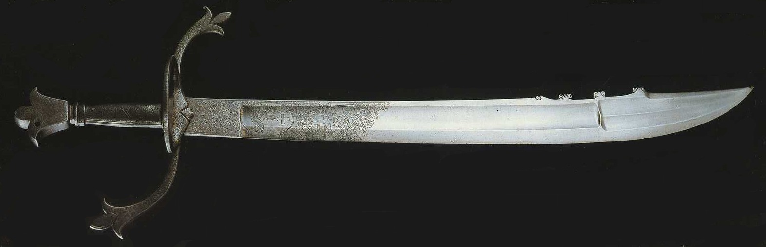 В том виде каком мы его себе представляем, а именно с эфесом в виде цельной чашки или одной широкой дуги закрывающей руку, абордажное оружие сформировалось только к началу 18 века.