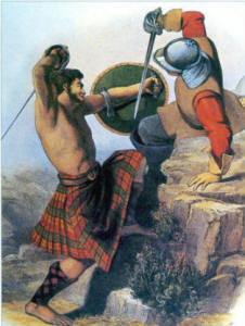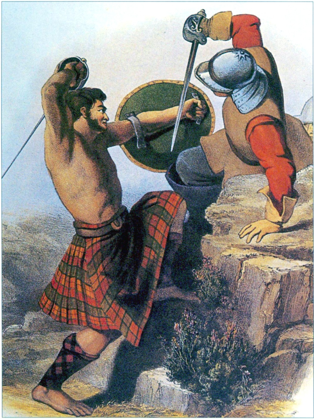 Клеймор (англ. Claymore) от гэльского claidheamohmor, что означает "большой меч". Термин обозначающий полутораручные и двуручные мечи, использующиеся в Шотландии и шотландскими наемниками с 15 до конца 17 века. В своей классической форме, клеймор состоял из прямого, широкого и обоюдоострого клинка, рукояти с длинным череном и дисковидным, реже шарообразным навершием. Главные отличия — прямые концы крестовины отклонены в сторону острия клинка и заканчивающиеся лепестками клевера. Крестовина имеет еще и перекрестья для более надежного крепления к клинку. Клинки шотландских больших мечей, как правило, короче, чем современные им клинки Континентальной Европы. Вес этих мечей обычно 1,5 -2,5 кг, максимальный 3,5 кг.
