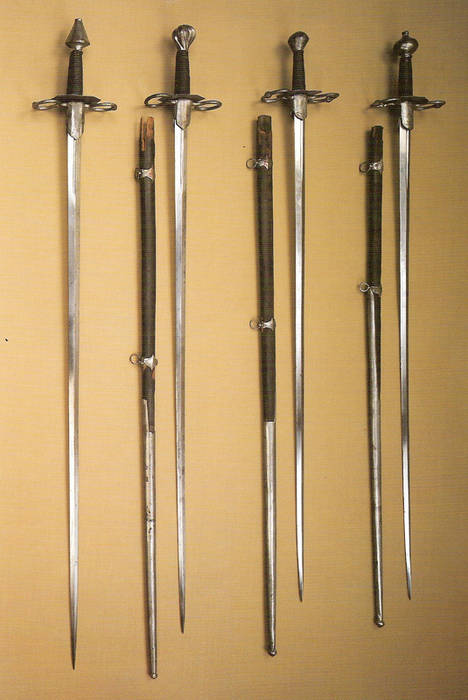 | Венецианские мечи 15 века. Здесь мы можем видеть даже венгерскую саблю, но со специфической рукоятью. German Historic Museum (DHM) Берлин. |