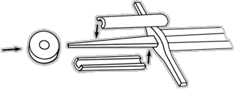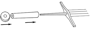 Этот черенок составлен в двух вырезанных половин, которые соответствуют хвостовику. Черенки этой формы, как правило, используются  если хвостовик меча широкий и плоский, и были в употреблении от эпохи викингов до конца 12-го века (хотя отдельные примеры датированы и более поздним временем). Они чаще всего плоские или овальные в сечении, также слегка конусообразные, постепенно расширяющиеся к крестовине. Этот метод является более сложным и лучше подходит для длинных мечей, клинки которых, по мнению Эварта Окшотта были несколько уже и стройнее. В этом методе сначала черенку придают форму, а после насквозь просверливают по всей длине. Затем надевают черенок на хвостовик. Черенки этого типа, как правило, гораздо более округлые, часто просто круглой или шестиугольной формы.