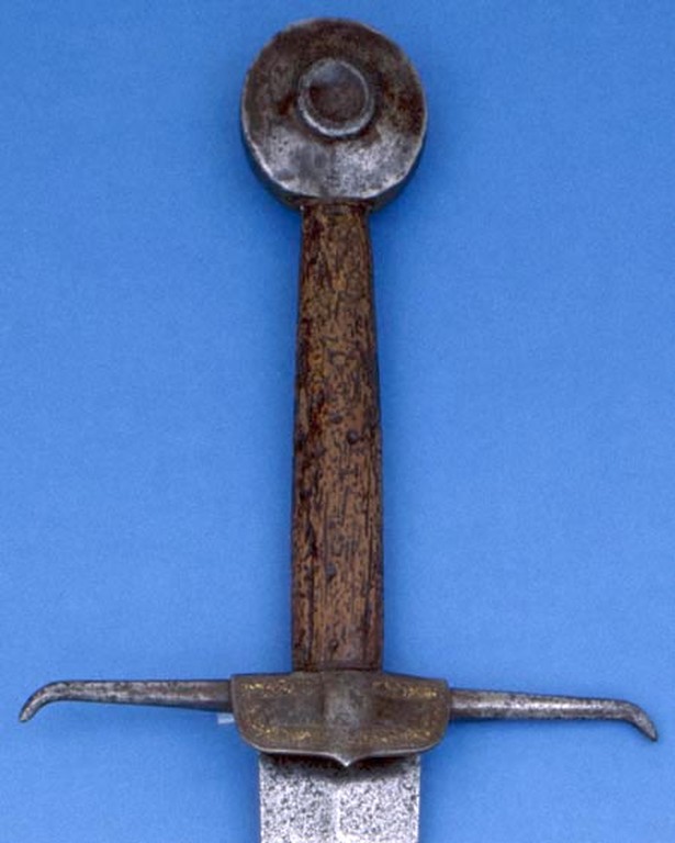 Меч 14 века, снабжен рукоятью с деревянным черенком. Меч святого Мартина около 1280 г. Черенок из двуз деревянных частей оклееный тканью и облетенный шнуром. Сохранилось и устье от ножен.