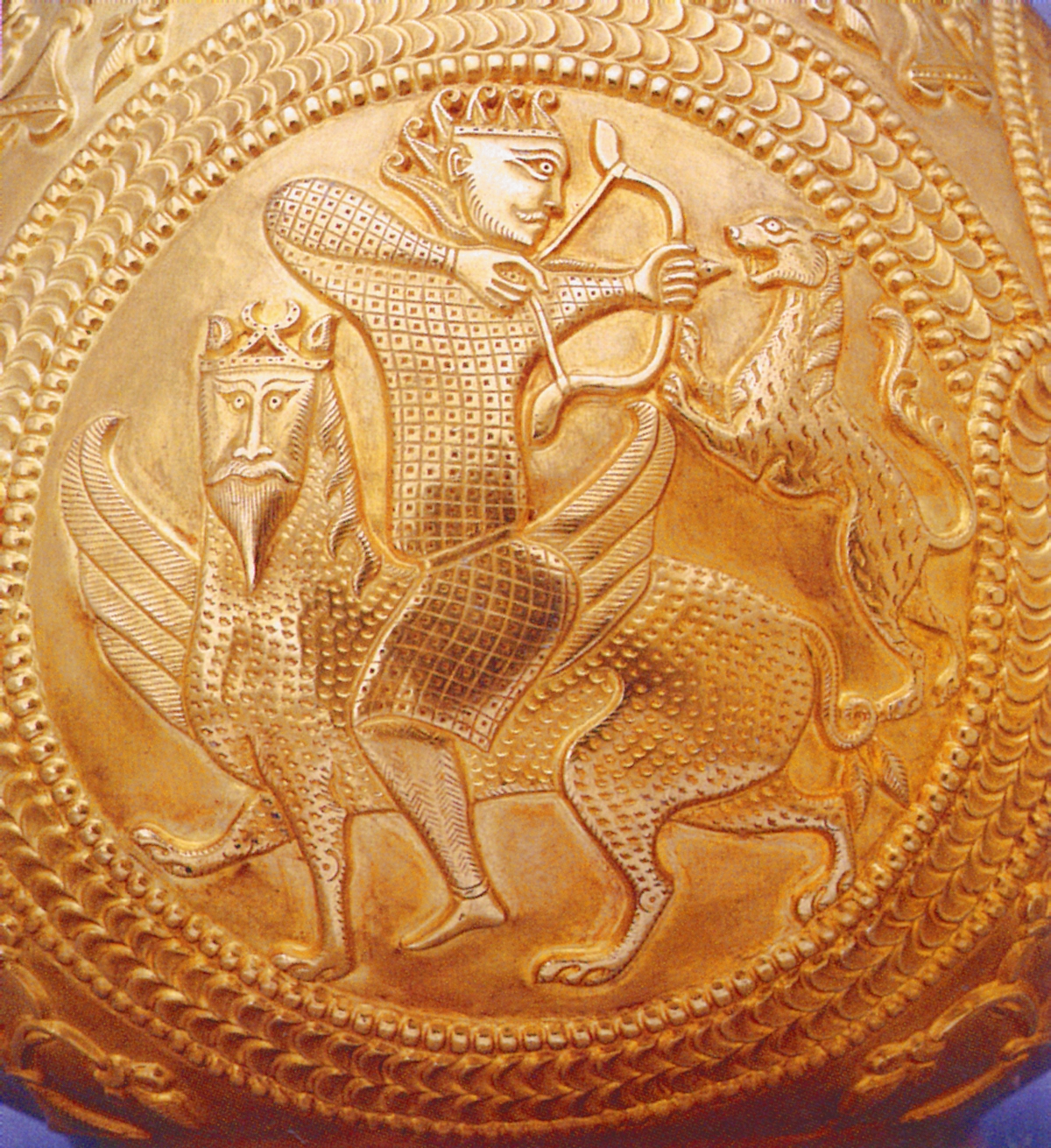 | Медальон с релефного изображении из клада Наг Сент Миклош (Големият свети Миклош), Румъния. IX век. Художествено-исторический музей Виена. | |