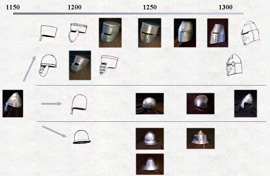 Но все же чаще всего Черепник встречается на изображениях 1250-1330 х годов. Позже богатые и бедные воины переходят на другие типы шлемов.