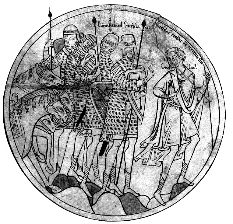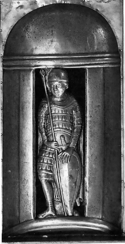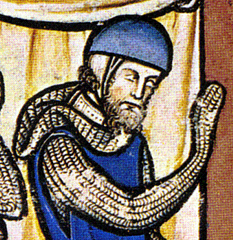 Рис.2 Рыцарь в чешуйчатом доспехе и Черепнике замок Gross comburg chandelier, Германия. Рис. 3 Шлема середины 12 века. Виден Черепник без наносника. (The life of Saint Guthlac  British Museum Library Board).
