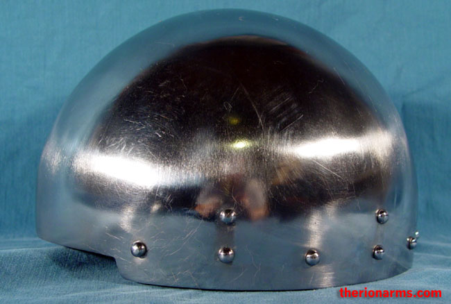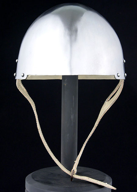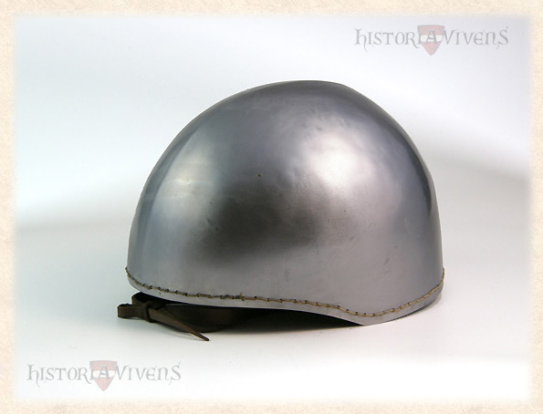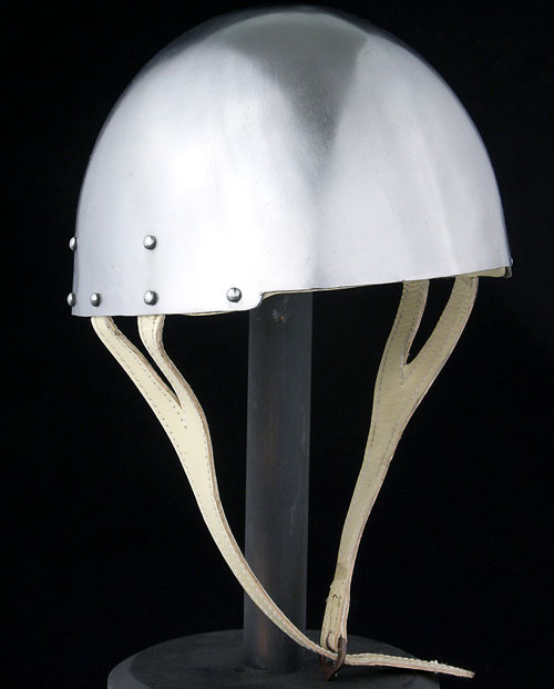 Также он носился под кольчужным капюшоном и над кольчужным капюшоном и чаще всего вместо верхушки кольчужного капюшона. На кольчужный капюшон, особенно когда он единое целое с остальной кольчугой, одевался шлем сначала Норманнский затем Высокий черепник с наносником, а потом и Топфхельм. Но вот представьте себе вы одели стеганый чепчик затем кольчужный капюшон и Топфхельм, а потом вы получили по голове и почувствовали боль, но не от оружия, а от того что шлем сдавил вам голову. Или так: во время боя с вашей головы слетел Топфхельм или вы его сбросили и остались в кольчужном капюшоне, который мало поможет при серьезном ударе по макушке. В такой ситуации верхушку кольчужного капюшона лучше заменить на Черепник, тяжелее чем лоскут кольчуги он не будет (скорей всего будет легче), если хорошо подогнан под голову будет удобен, и предоставит более жесткую защиту.