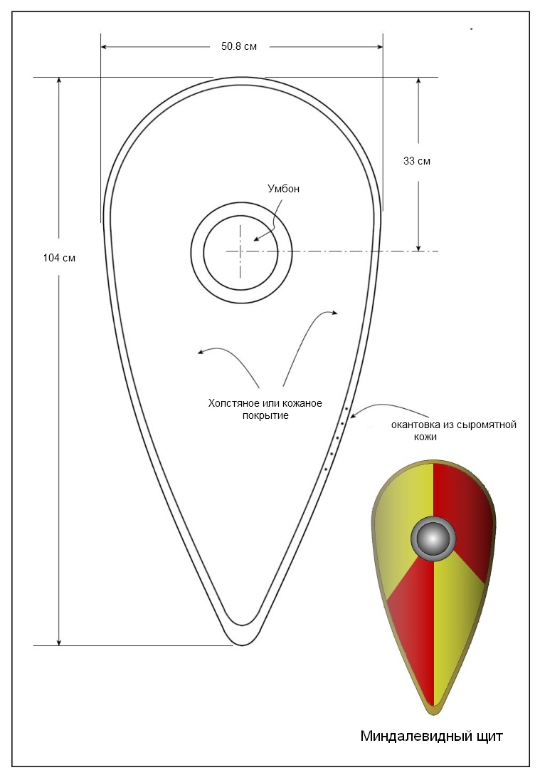 Ниже приведены некоторые размеры для стандартных каплевидного щита (Kite Shield), он также известен как миндалевидный и норманнский щит, подробнее описано тут – Рыцарские щиты 11-середины 12 века. Предложенные размеры только предложения, и не стесняйтесь настроить их под свои нужды.
