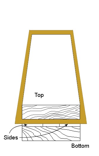 | В приведенной выше схеме я показываю как четыре четыре деревяшки соединяются вместе. | Эта диаграмма показывает, как бумага свободно помещается между верхней частью и с боковинками, чтобы держать все вместе во время изготовления. |