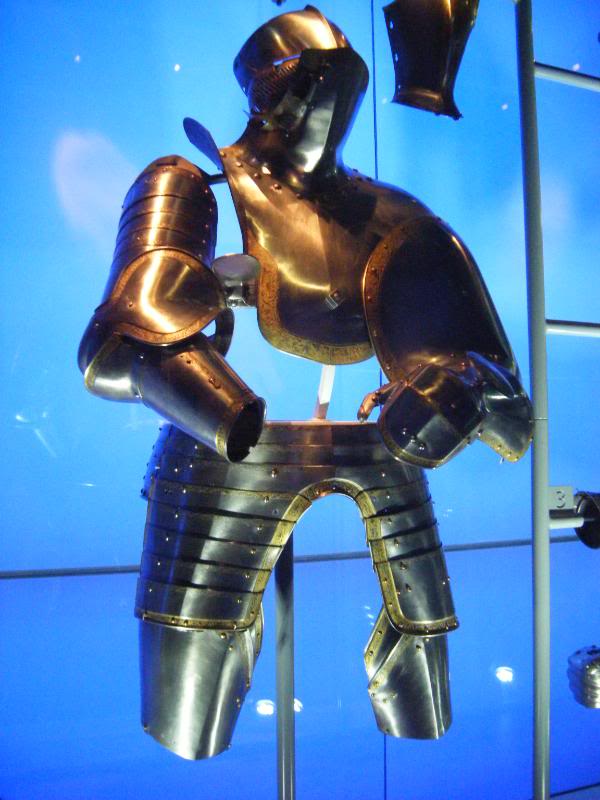 Это не все доспехи Генриха VIII, есть еще и очень известный шлем  с рогами и в очках, в Нью Йорке в музее Метрополитен есть еще два комплекта 1527 и 1544 годов. Последний явно рассчитан на очень толстого рыцаря, но анлийским ученым толком его исследовать не удалось.
