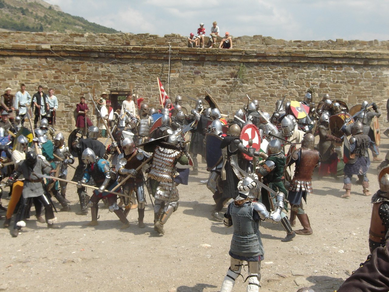 Ролевая игра – на этом мероприятии разыгрывается сценарий какого-нибудь сражения, периода 10-17 веков. При этом многие участники играют роль вполне реальных исторических персонажей. В них участвует обычно много клубов, и реконструкторов может собраться больше тысячи. Противоборствующие армии идут в бой поднимая тучи пыли. Отряды лучников организуют целый дождь стрел. Сражения, приближенные по уровню жестокости к реальным проходят как на поле битвы, так и на дорогах , а то и в каких-нибудь закоулках, участникам ролевых игр порой всерьез кажется что находятся на войне. Особенно живописно со стороны наблюдать штурм укреплений, у которых есть и рвы, стены и башни. Но что удивительно все остаются живы, умирая только понарошку. Бывает так что попадают и в плен, но в общем всем весело. А вечером, когда бои утихают, враги сидя у костра и потягивая медовуху из общего котла обсуждают кто как хорошо дерется и кому хорошо сегодня хорошо влетело.
