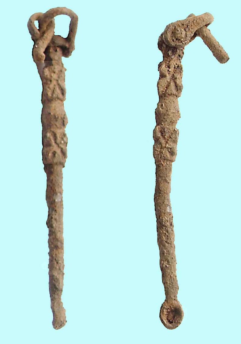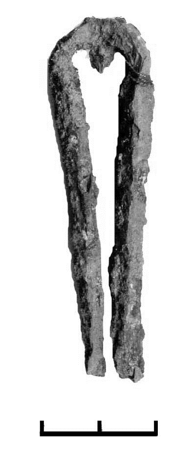 Музыкальный инструмент. В 1983 году был найден интересный железный предмет, назначение которого установить трудно. Предмет имел форму небольшой дуги с удлиненными концами. Длина концов 6,4 см, в центре изгиба крепился (скорее всего, приклепан) тонкий пластинчатый язычок, от которого сохранилось лишь основание длиной 0,4 см. Данное изделие напоминает музыкальный инструмент «варган», найденный в Новгороде в слое XVI в. (Колчин Б. А. 1959. С. 117–118) и марийский инструмент умша ковыж, что означает ротовая скрипка (Герасимов О. 1996. С. 72–73).