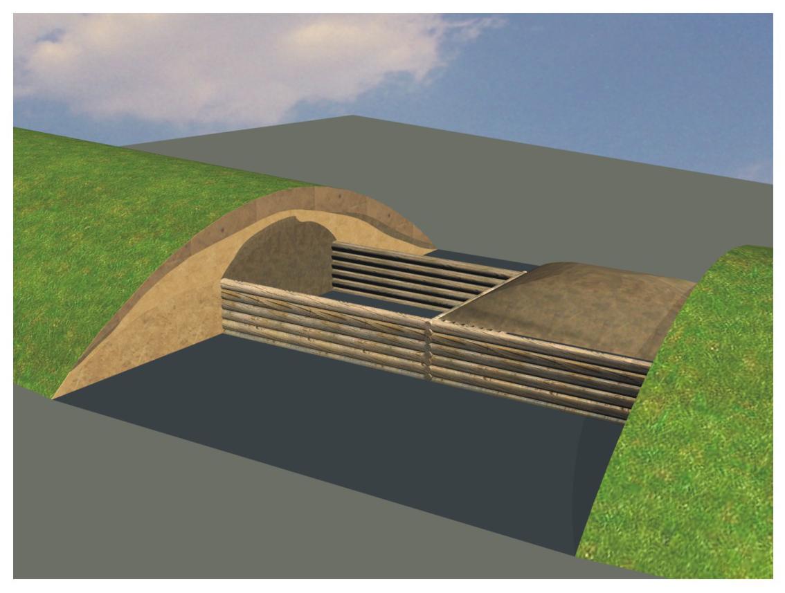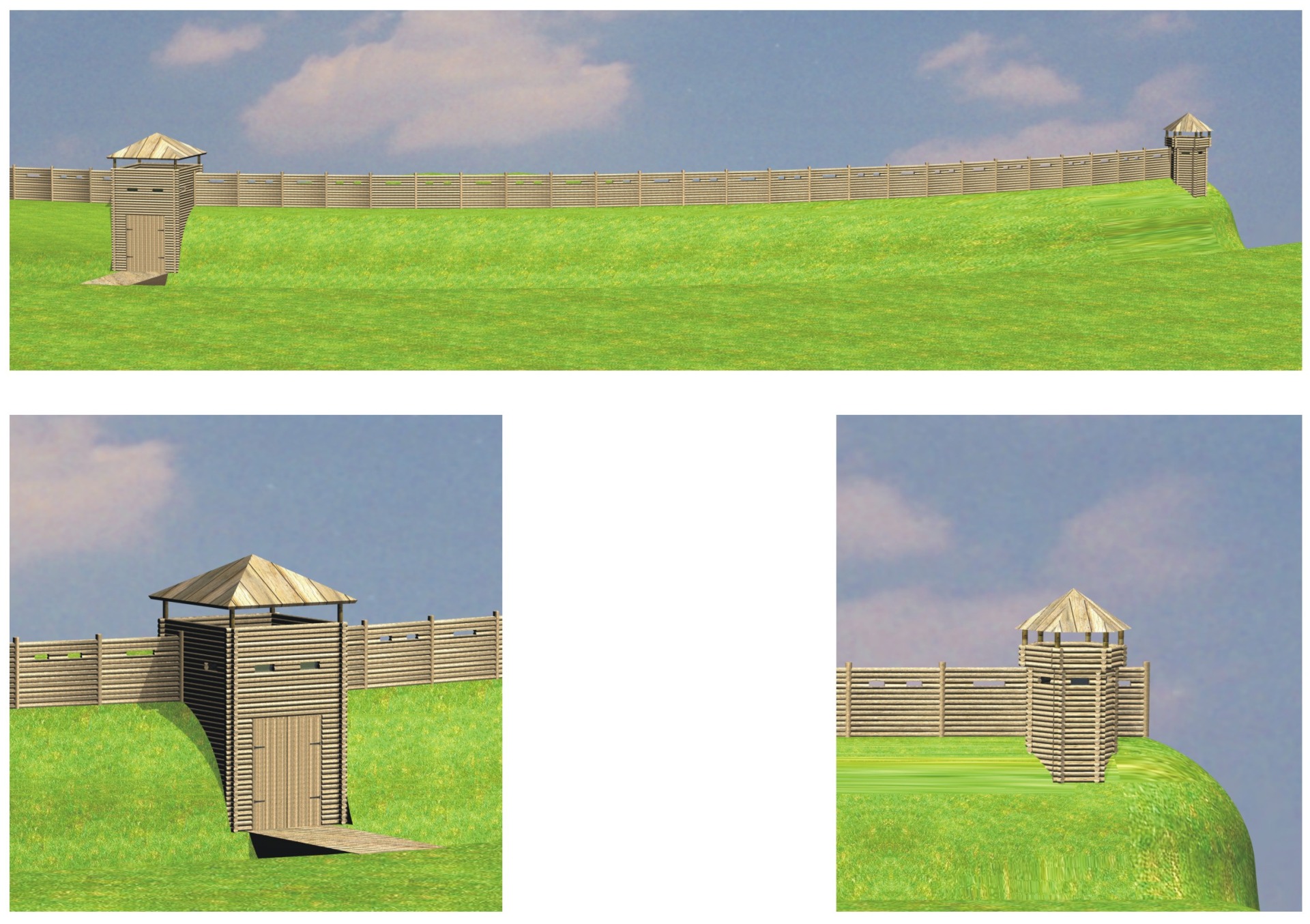 Оборонительная система Важнангерского (Мало-Сундырского) городища В первых исторических упоминаниях о Сундырской горе в XIX в. достаточно красноречиво описаны остатки земляных оборонительных укреплений: «…укрепление начинается первоначально с западного края горы, едва приметным рвом, сравнявшимся с землей, который, простираясь на юг, становится значительнее, а далее всю южную сторону, примерно на четверть версты, огибает полукругом земляной вал, вышиною местами аршина в два, а ров глубиною более аршина, идет рядом за валом, и достигают они оба до северного края горы, совершенно их отсекающей своим крутым утесом к волжской стороне; самая середина вала и рва перерезана: по всей вероятности, существовали тут ворота, или какое-нибудь другое отверстие для вылазок» (Михайлов С. М. 1972а. С. 34). За столетие вал оплыл, не так четко фиксируются отдельные детали насыпи, но все же остатки оборонительной системы в виде земляного вала с проездом, рва с напольной стороны и очень слабой ложбинки со стороны мыса заметны и в настоящее время.