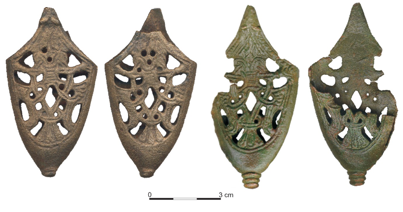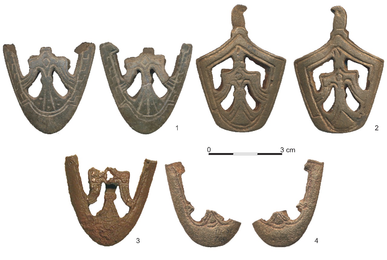 I-1 – Scandinavian group of chapes with the bird motif; I-2 (a, b, c, d) – Swedish-Varangian group of chapes with the bird motif; II-1 – Scandinavian group of chapes with a quadruped motif;