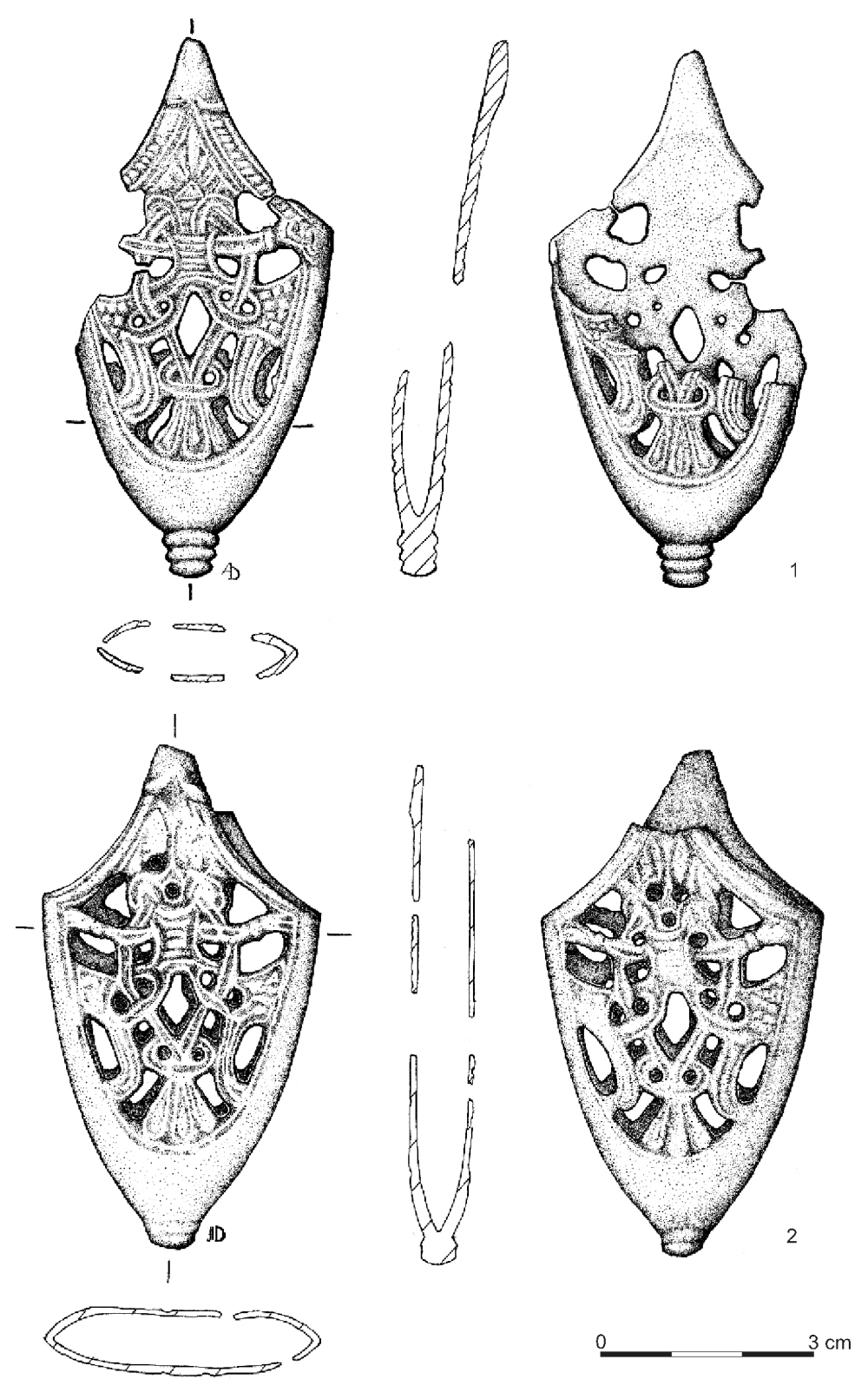 II-2 – Swedish group of chapes with a quadruped motif. II-3 – chapes with an animal motif of Baltic region; II-4 – chapes with a quadruped motif with a palmette added.