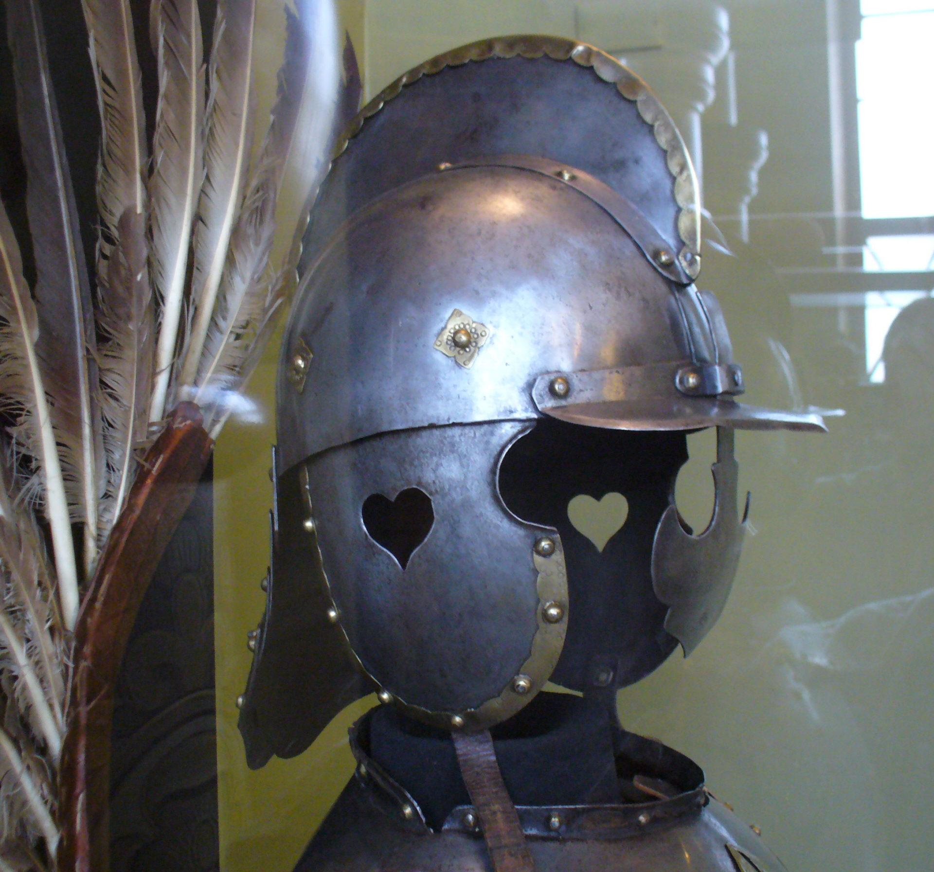 Шлем Паппенхеймер. Гусарский доспех  Гусарский доспех немецкого стиля, 17 век. Замок Мальброк (Мариенбург)