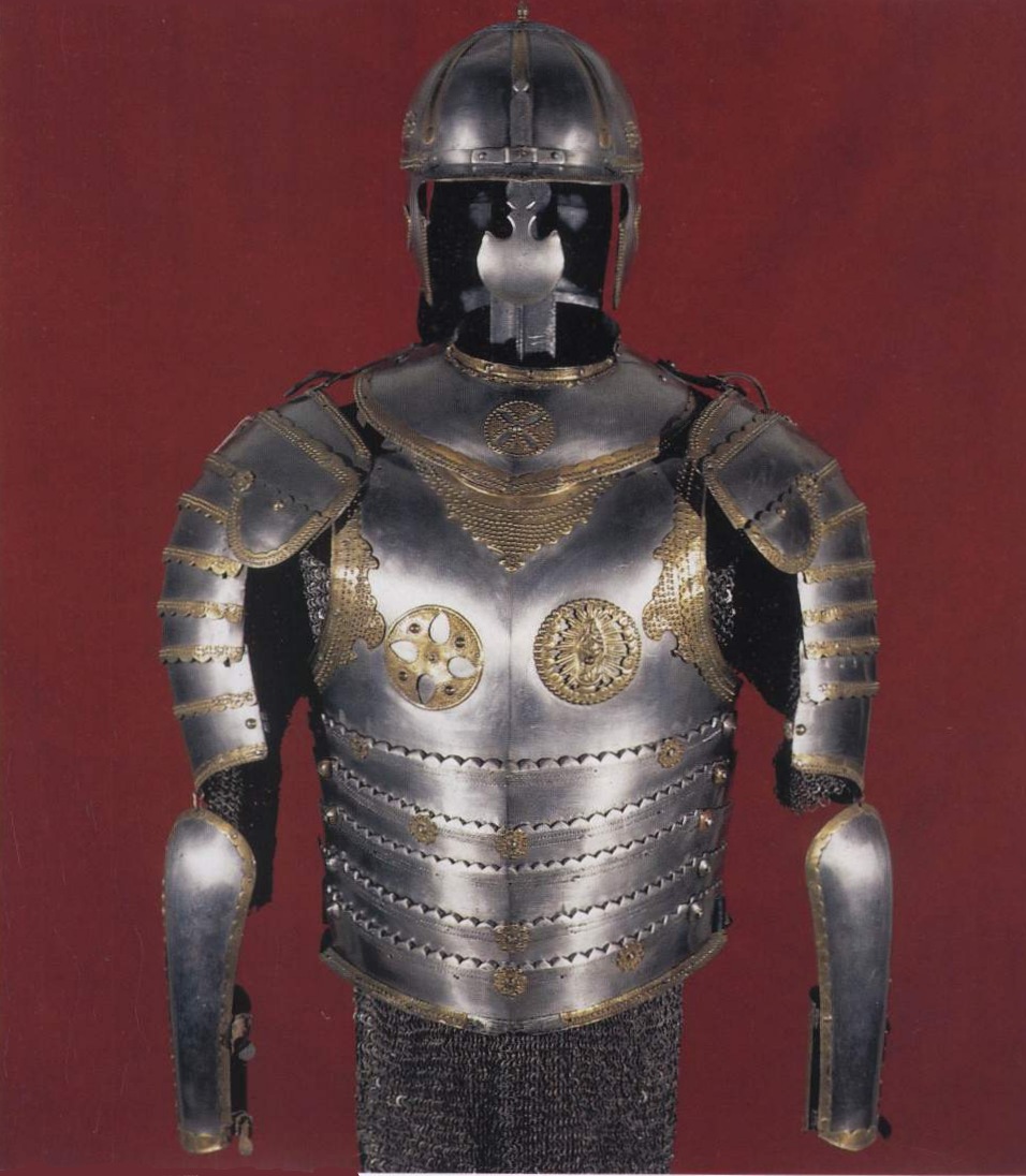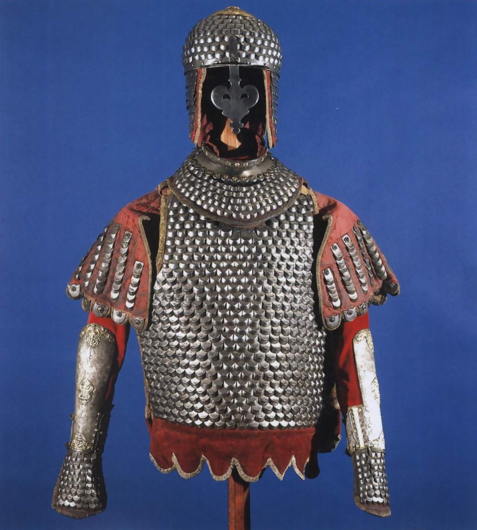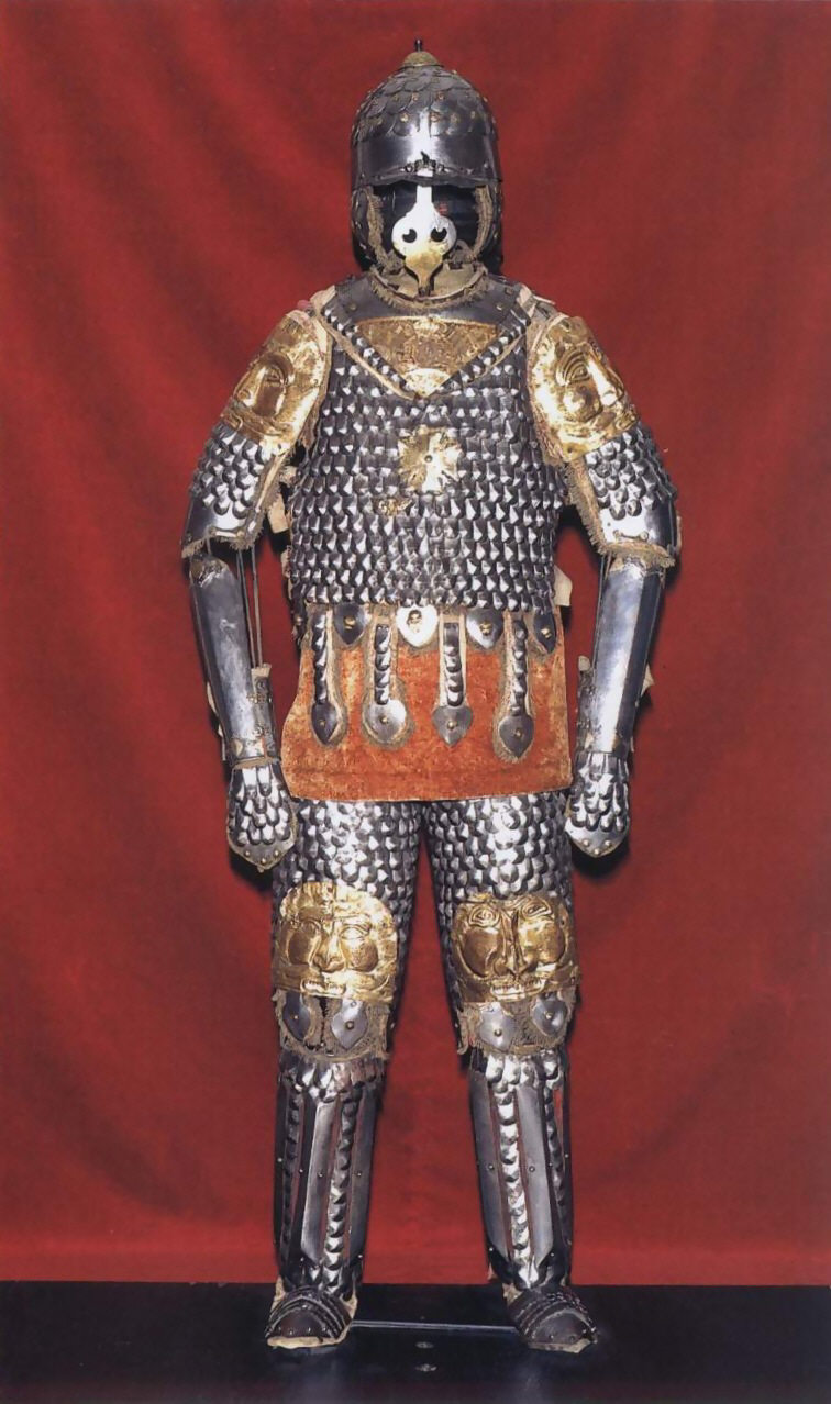 Русский трофейный бехтерец. 1576 г. Нац. музей в Кракове. Комплект польского гусара середины 16 века. Шлем турецкого типа и щит венгерского. Музей Kunstistoriches в Вене. Австрия.  Доспехи польского короля Стефана Батория, втор. пол. 16 века. Музей Kunstistoriches в Вене. Австрия.